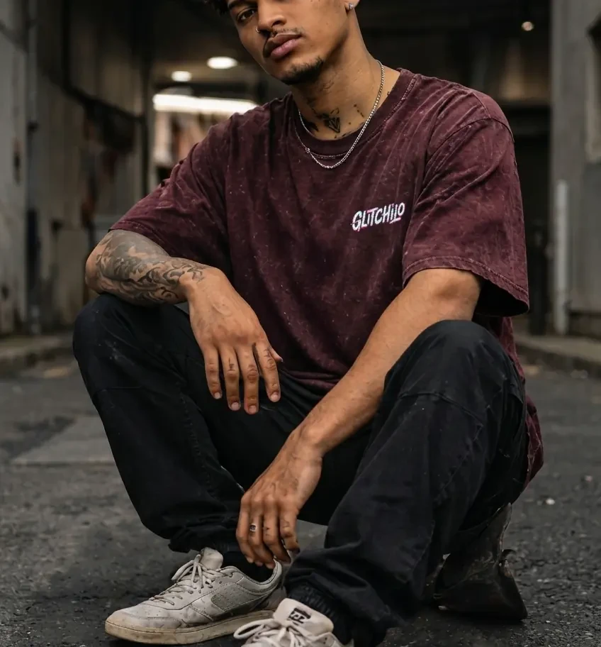 The Maroon Acid Wash Tee brings a raw, vintage aesthetic to modern streetwear — with a textured finish that feels lived-in from day one. Each piece carries its own unique fade, making it as individual as the person wearing it.