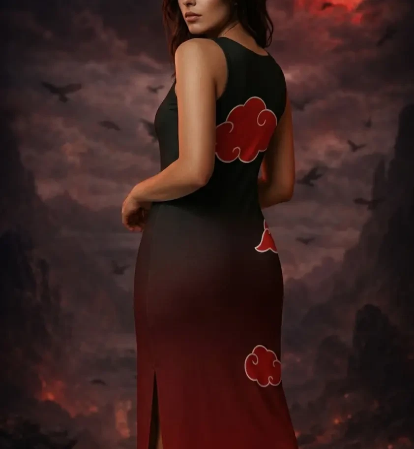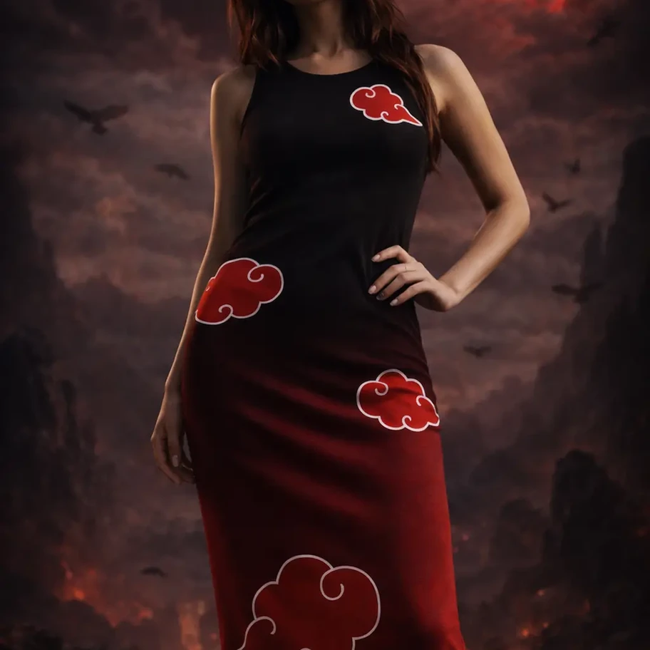 The Crimson Cloud Dress draws from dark, atmospheric aesthetics — where floating clouds drift across a blood-red horizon. A bold contrast of serenity and intensity, designed for those who carry quiet power with undeniable presence.