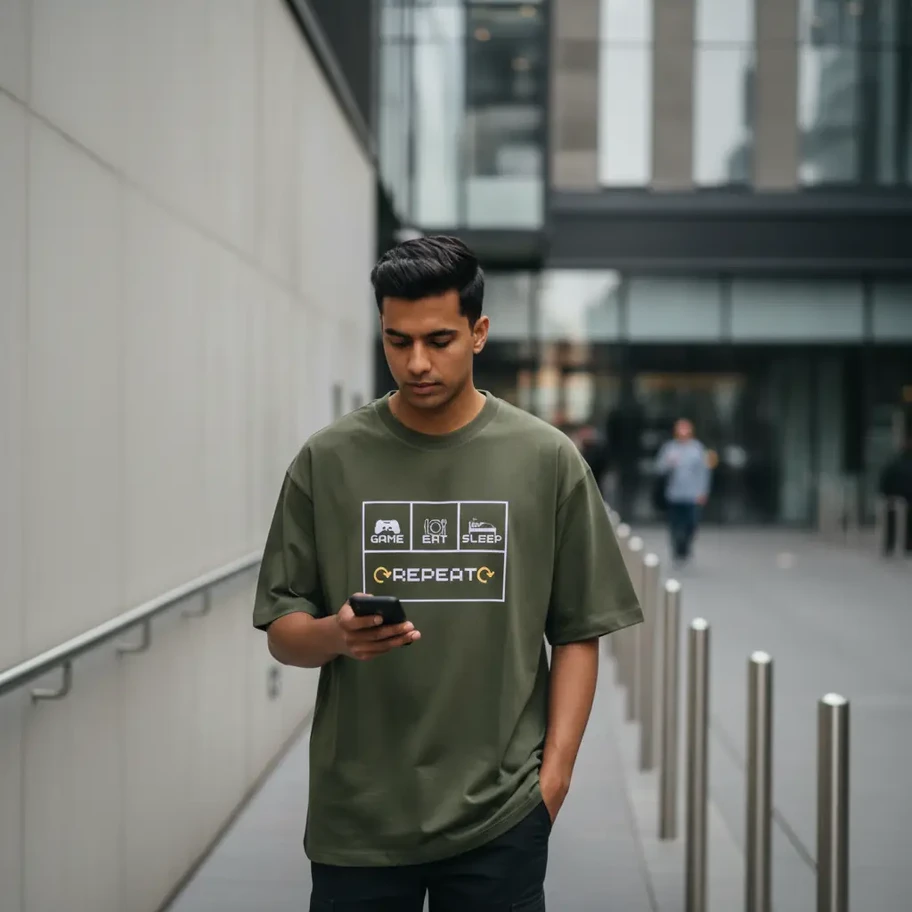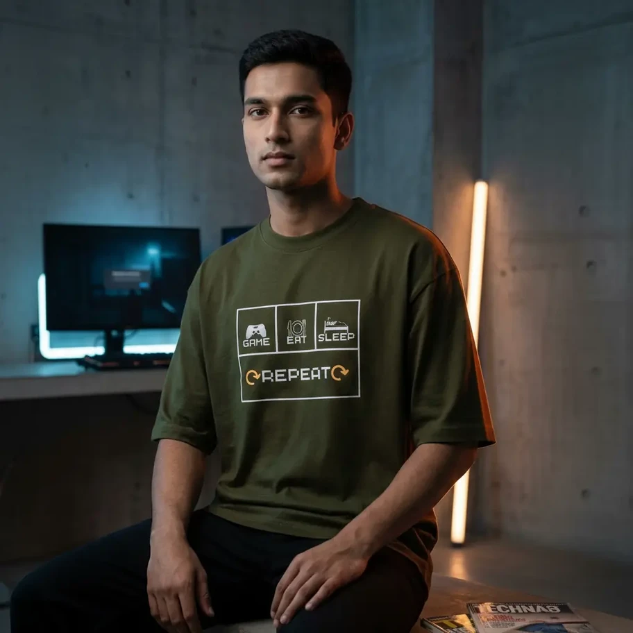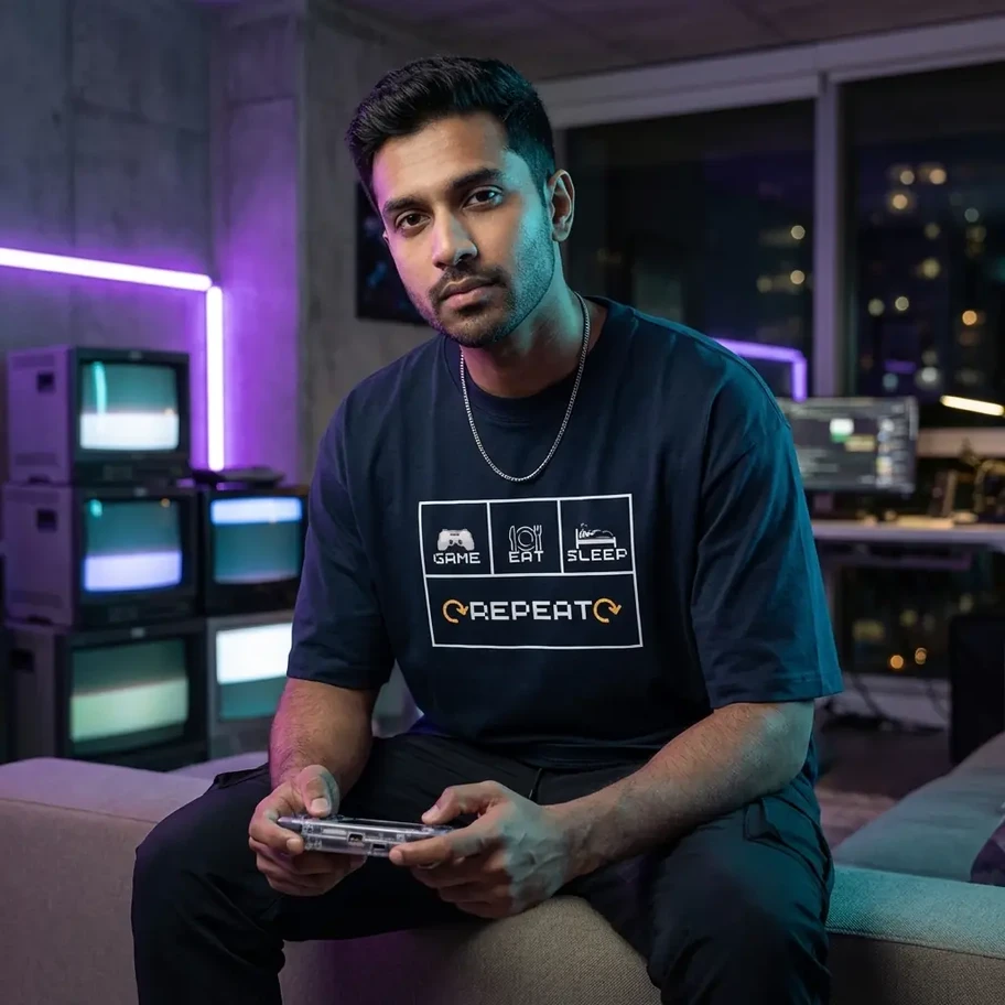 A simple loop that every gamer knows too well. This tee celebrates the endless grind, late-night sessions, and the lifestyle built around pixels, competition, and play.